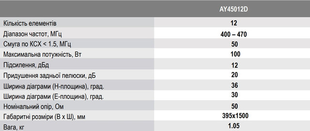 Антена спрямована AY-45012D, 400-470 МГц, 12 дБд, з петльовим вібратором 12 ел.